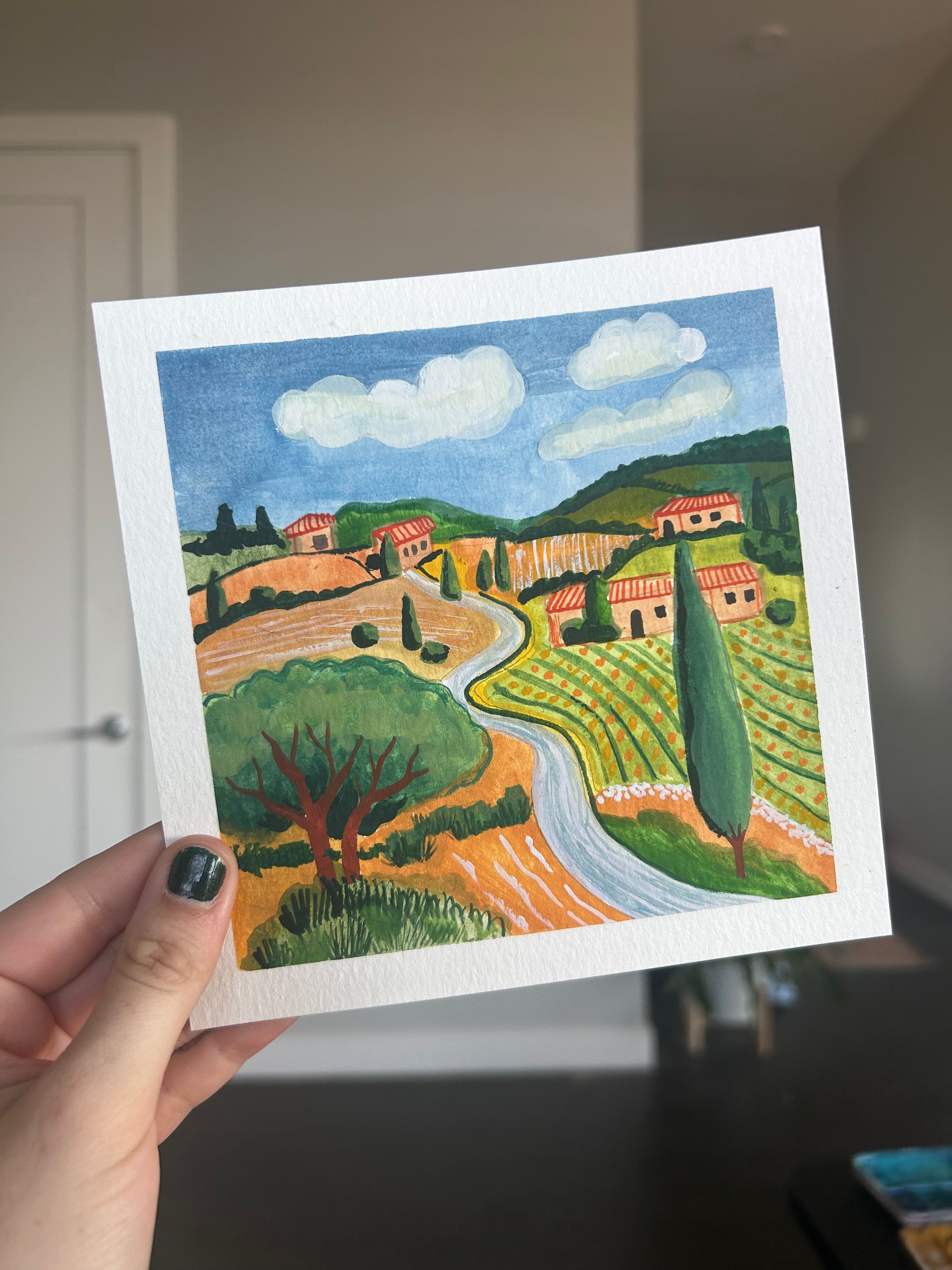 Original gouache painting on 6x6” paper with a small white border.
